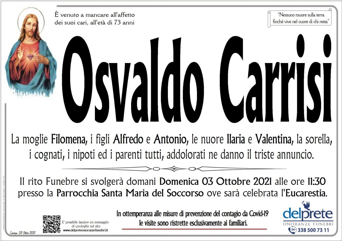 Siamo vicinI al vostro dolore per la perdita del caro Osvaldo.ANNA LOPARCO E FAMIGLIA02-10-2021Anna LOPARCO